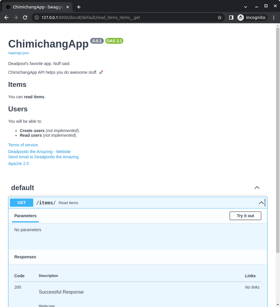 A short summary of the API. Available since OpenAPI 3.1.0, FastAPI 0.99.0. | ||||||||||||